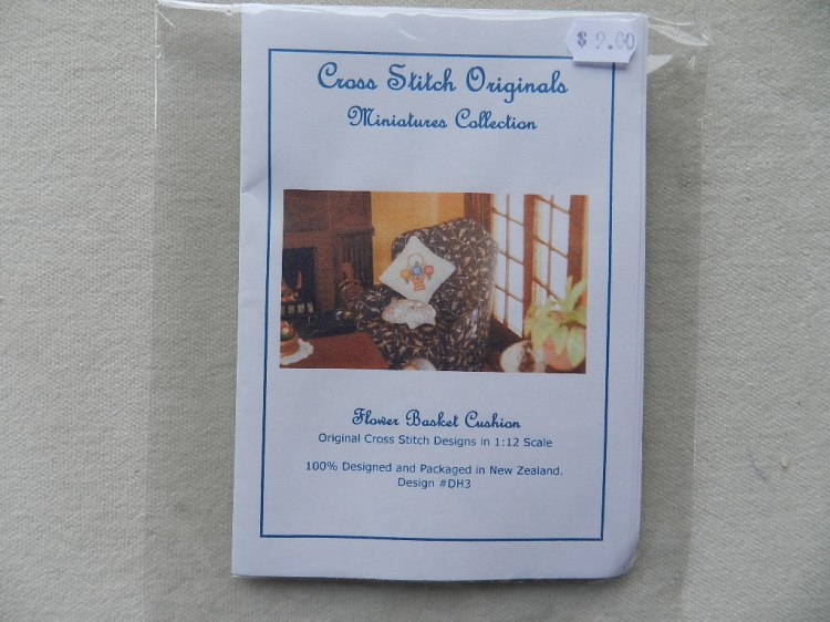 Floral basket cross stitch cushion kit. Antique white, 31 count Belfast linen. Measures 3.5 x 3.5cm ( 1 1/4 x 1 1/4″)