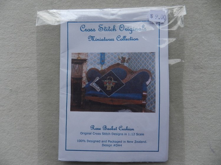Rose basket cross stitch cushion kit. Black, 31 count Belfast linen. Measures 3.5 x 3.5cm ( 1 1/4 x 1 1/4″)