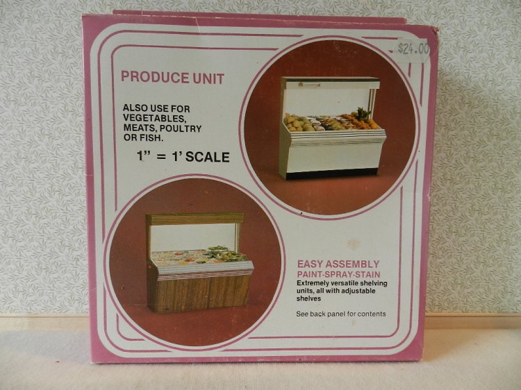 Produce unit for vegetables, meats, poultry or fish. Plastic. Easy assembly. Contains all materials & instructions to assemble one unit. Includes mirror for back and bag dispenser. Accessories not included.