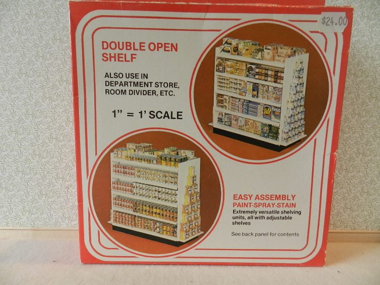 Double open shelf kit for use in grocery or department store. Plastic. Easy assembly. Contains all materials & instructions to assemble one unit. Includes 6 adjustable shelves, three for each side, plus an optional aisle marker (not shown). Accessories are not included.