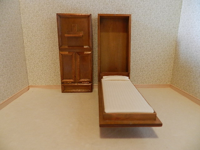Walnut single Murphy bed.