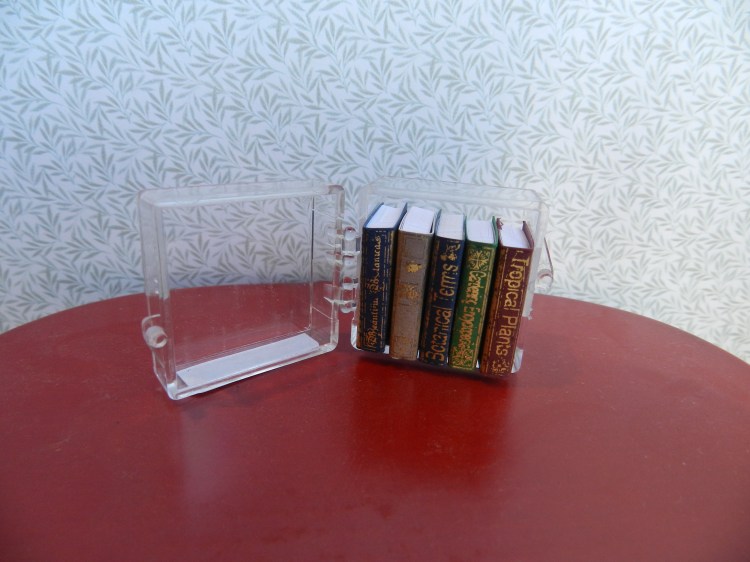 Five botanical books. Non-readable. 1.7 x 2.2 x 0.5cm
