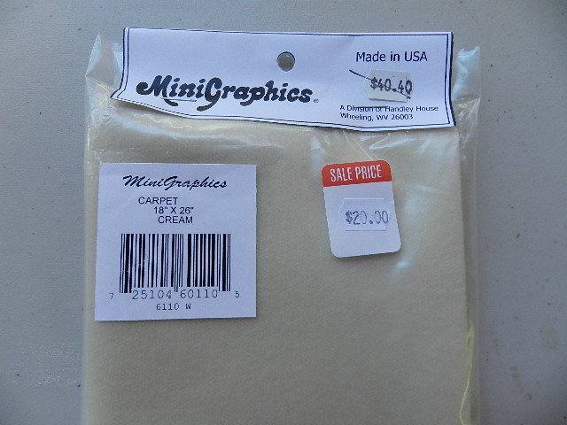 Cream carpet. Needs glue. 18″ x 26″