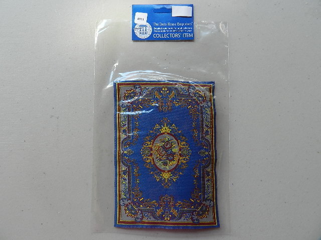 Woven Victorian blue fringed rug. 24cm x 15cm