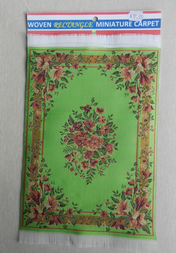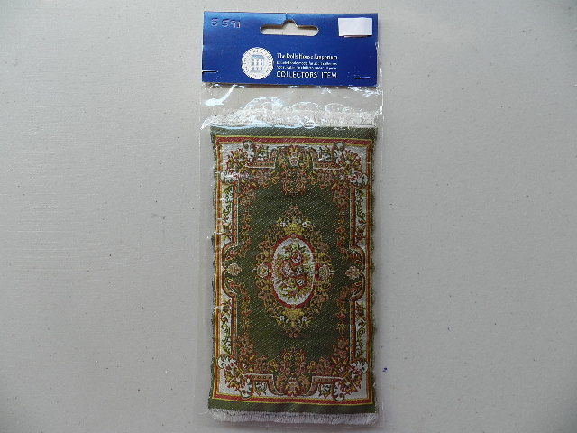 Green Victorian fringed rug. 18.5cm x 10cm