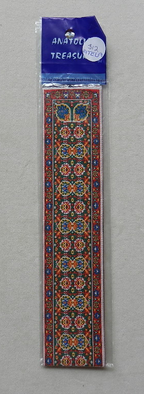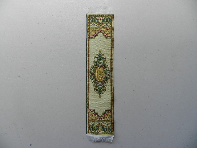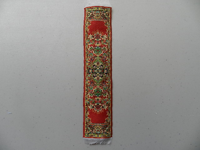 Carpet runner. Red, green, gold & cream. 21.5cm x 5cm