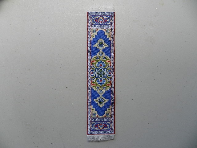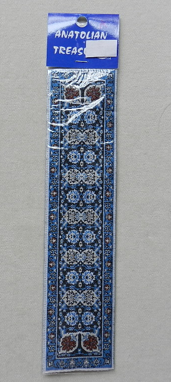 Carpet runner. Blue, cream, red & white. 21.5cm x 5cm