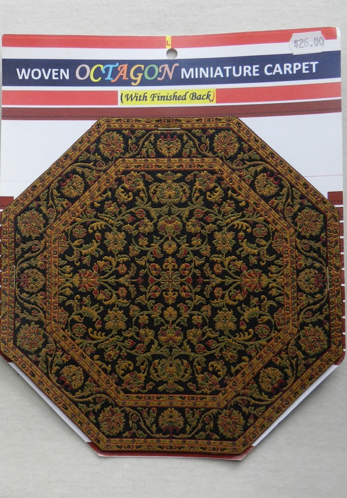 Woven Oriental octagon rug. Black, gold & red. 17cm x 17cm