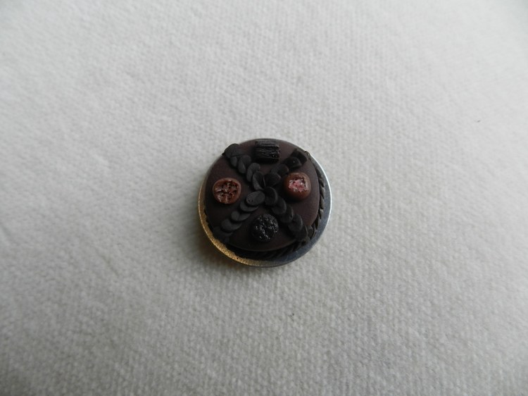Round chocolate cake with truffle chocolate decorations. Served on a ‘silver’ plate.