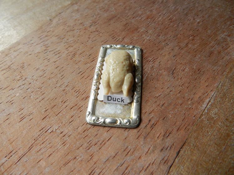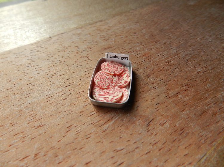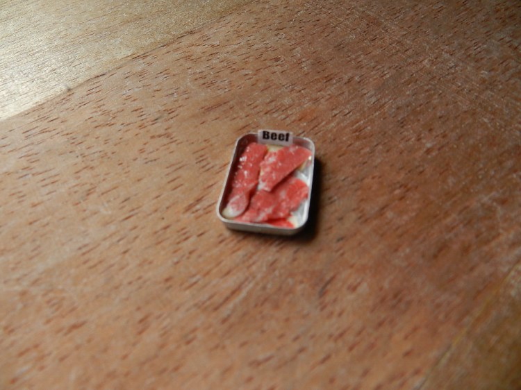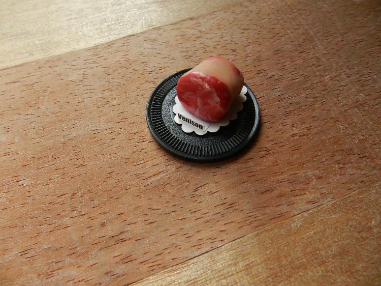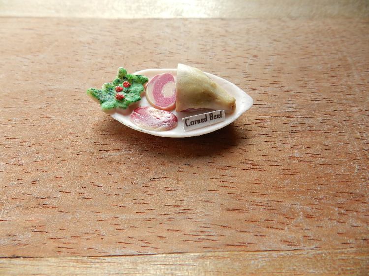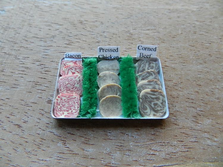 Bacon, pressed chicken & corned beef on butcher’s tray.