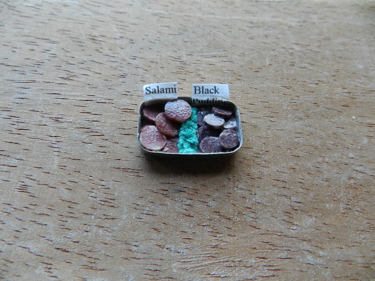 Black pudding, pressed chicken & salami on butcher’s tray.