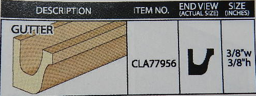 Gutter. 24″ long x 3/8″ wide x 3/8″ high.