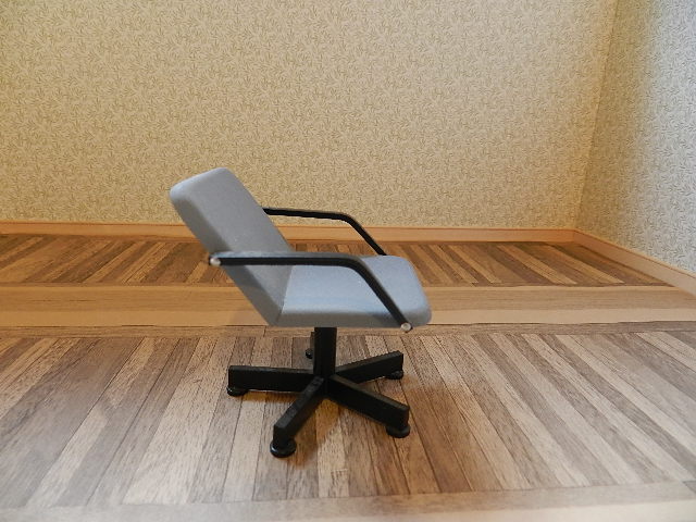 White reception desk with a ‘silver corrugated iron’ front by Delph Miniatures.