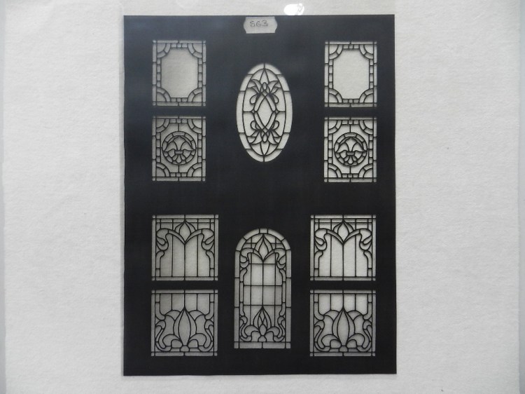 Leadlight pane adaptable to fit various sizes. Acetate.