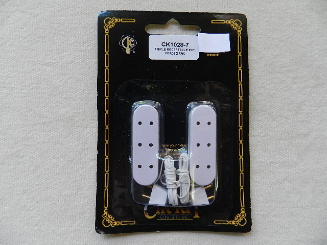 Triple receptacle power strip with extension cords. 2pk. Suitable for a tiny dolls house or a box room.