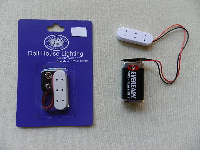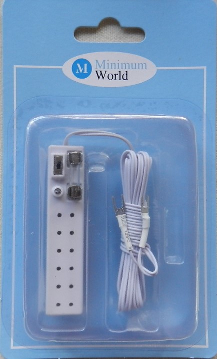 Triple receptacle power strip. Suitable for a tiny dolls house or a box room. Battery not included.