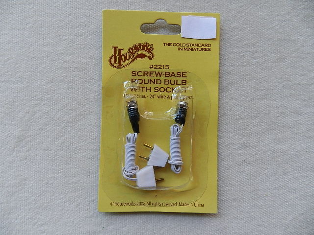 Screw base round bulbs with socket, white wire & plug. 2pk