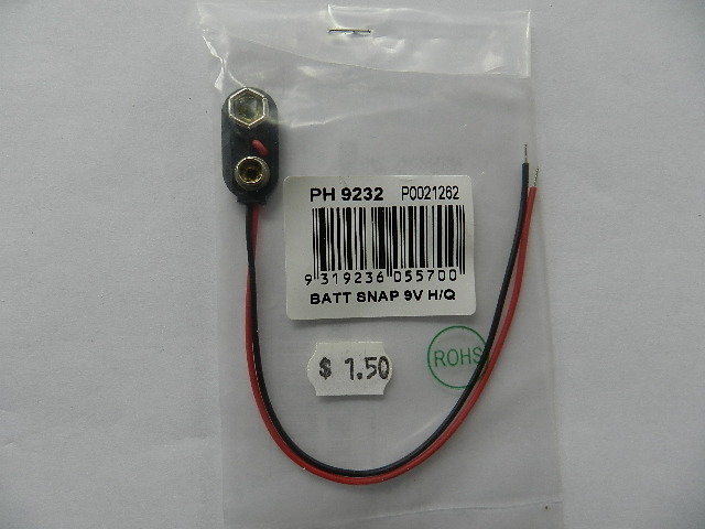 Battery snap clip with bare wires.