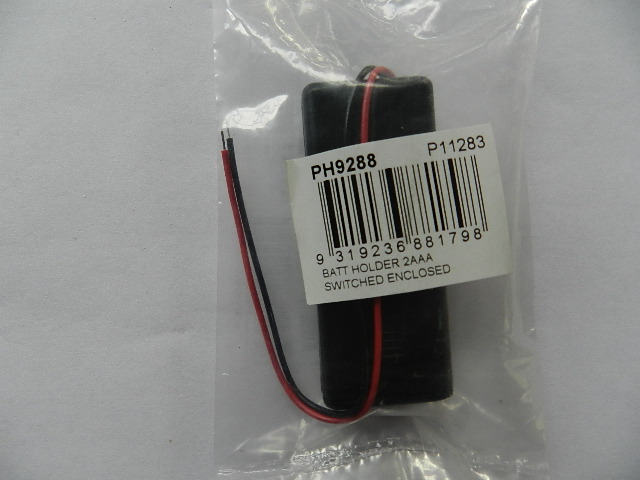 Battery holder with switch. Holds 2AAA batteries.