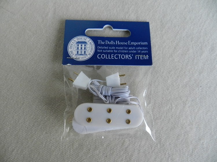 Triple receptacle power strip with extension cords. Suitable for a tiny dolls house or a box room.
