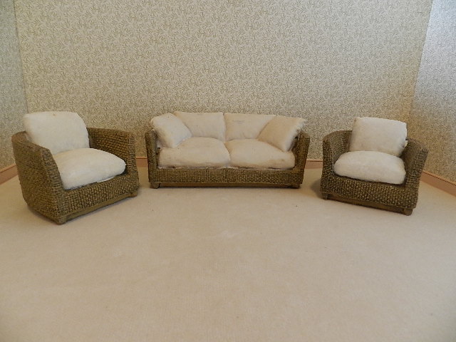 Rattan three piece resin lounge suite. Suitable for the living room or outdoors.