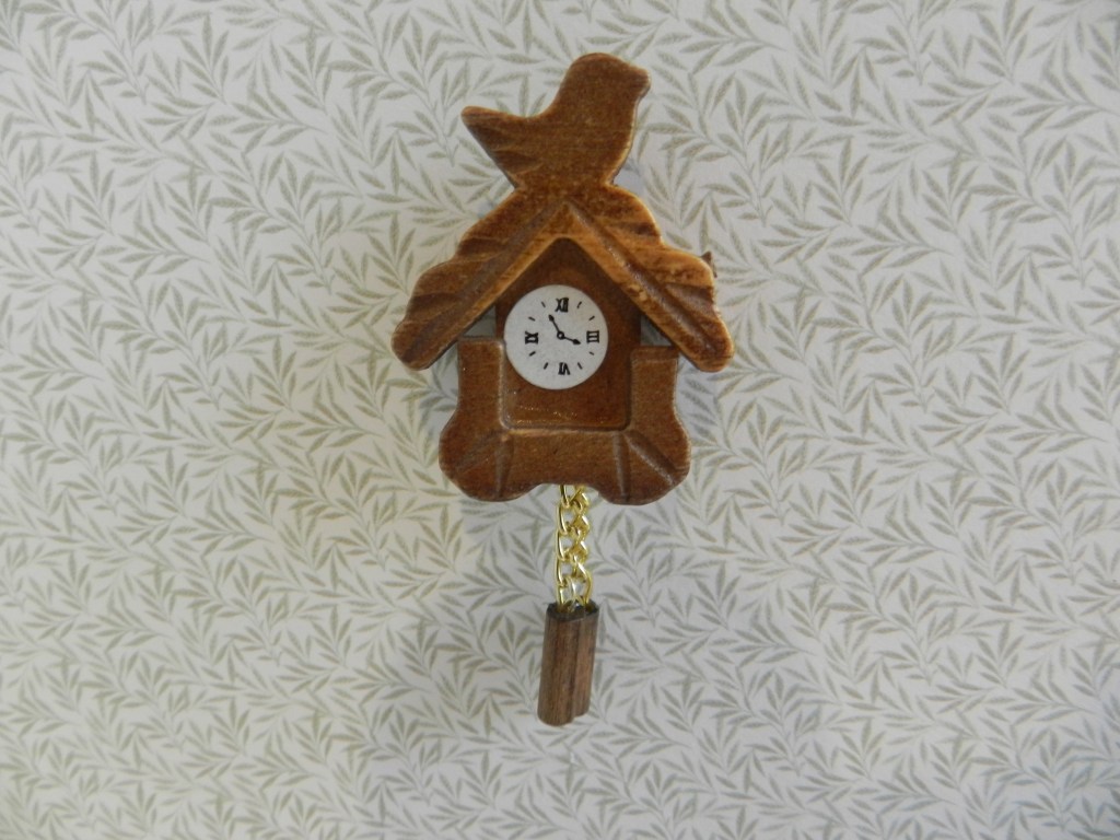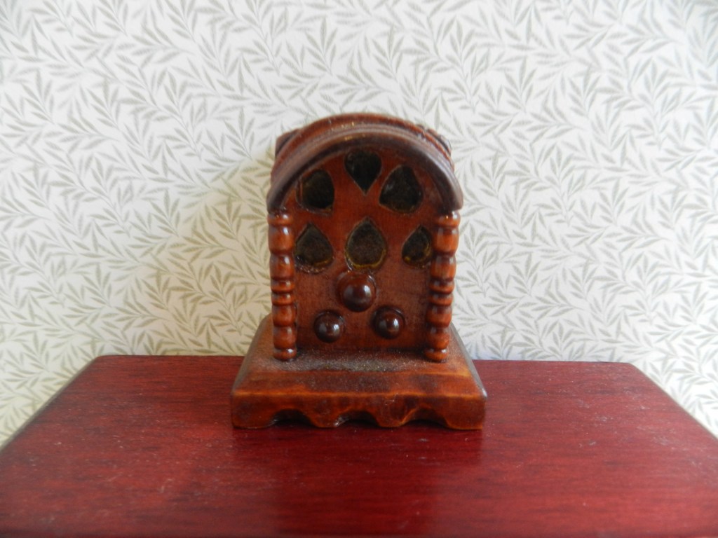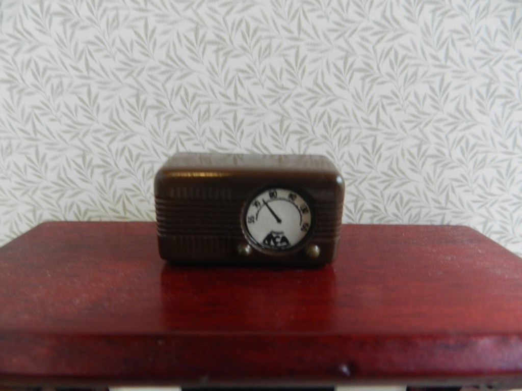 Brown wooden 1940’s clock. 4.2cmH x 3.6cmW x 2.4cmD