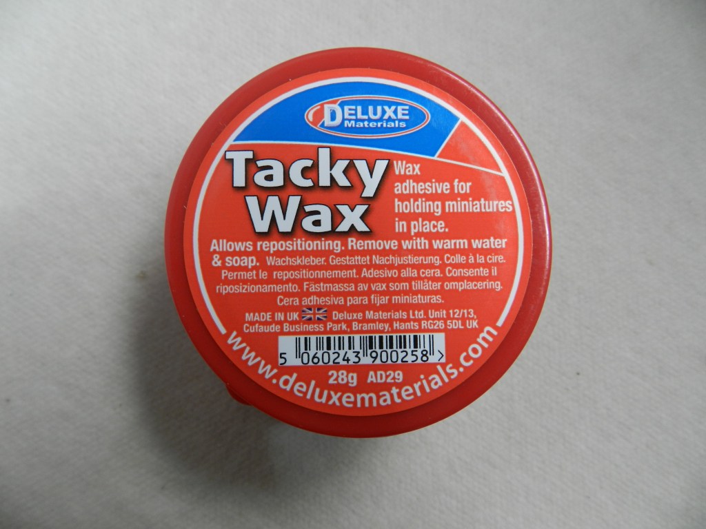 Deluxe tacky wax adhesive for holding miniatures in place. Allows repositioning. Remove with warm water & soap.