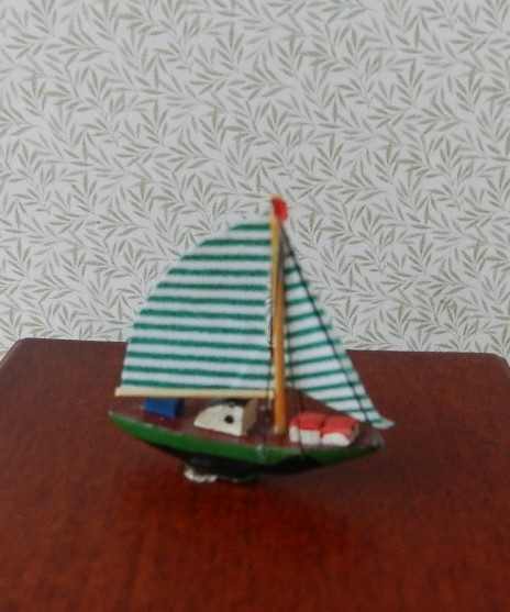 Green Stripe sailing ship. 4cm high x 3.5cm long.