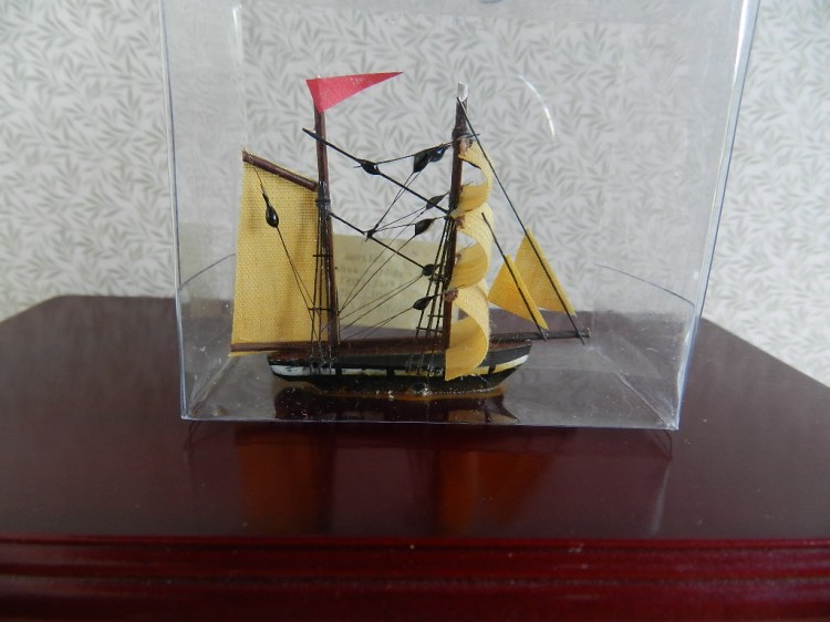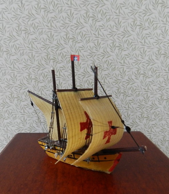 Santa Maria sailing ship. 5cm high x 5.5cm long.