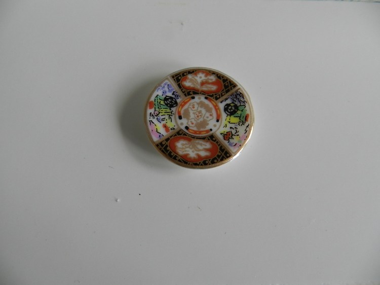 Round pink oriental plate. 3cm.
