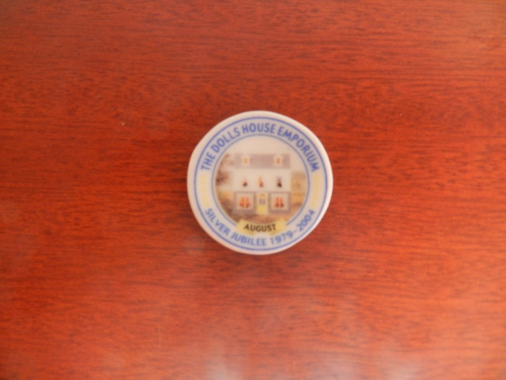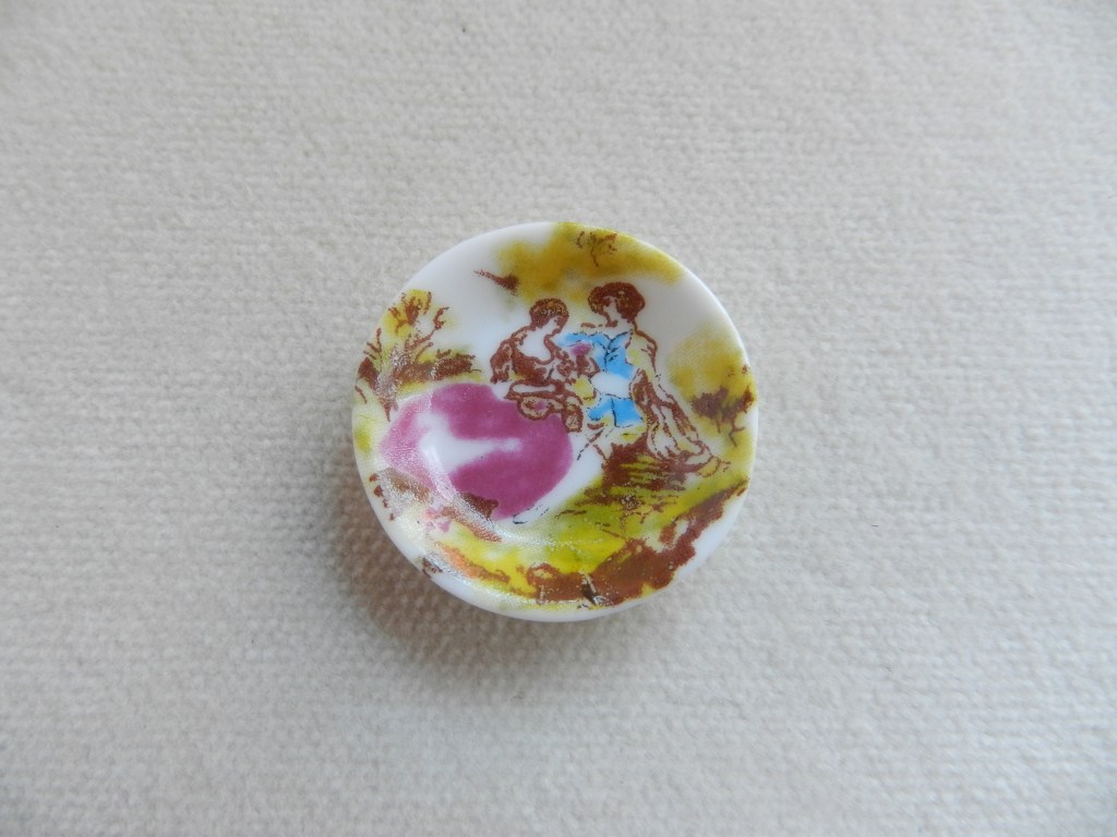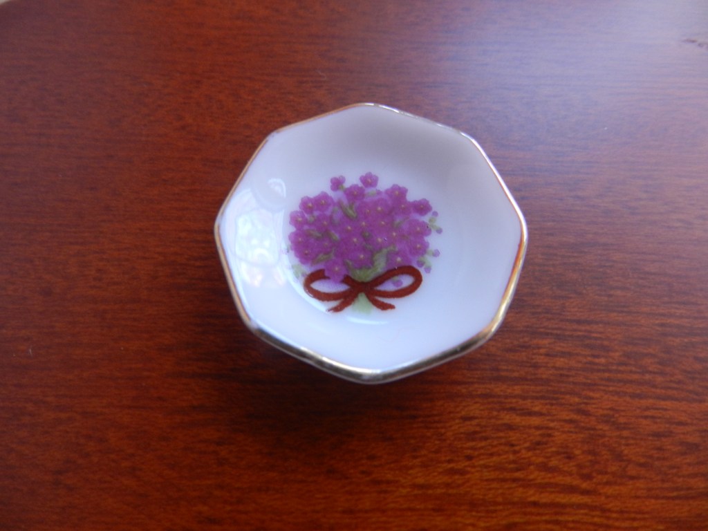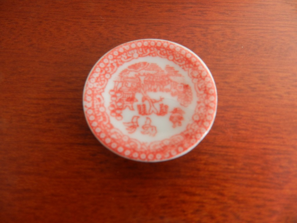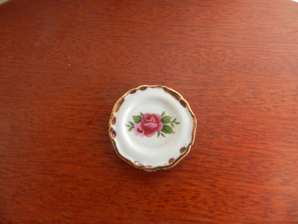 Round red rose ornamental plate with ‘gold’ rim. 2.5cm.
