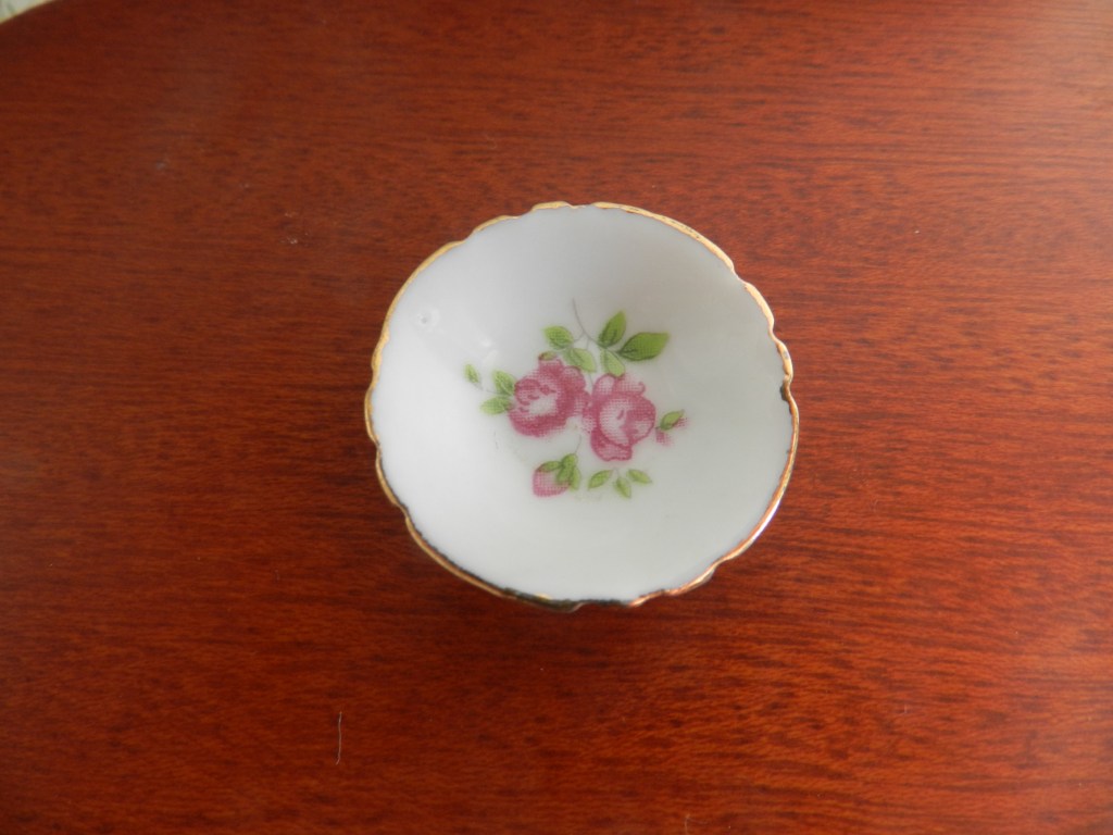 Red rose ornamental bowl with ‘gold’ rim. 3cm