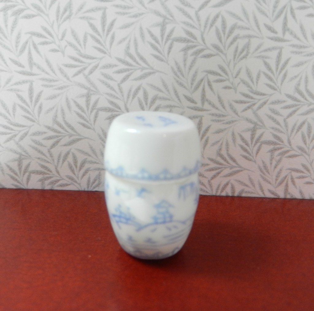 White & blue pots with lids.