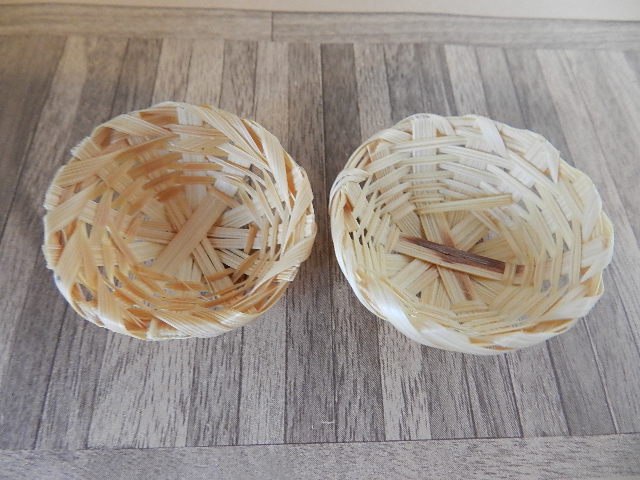 Two round wicker baskets. Measurements for basket 1, basket 2 slightly smaller.