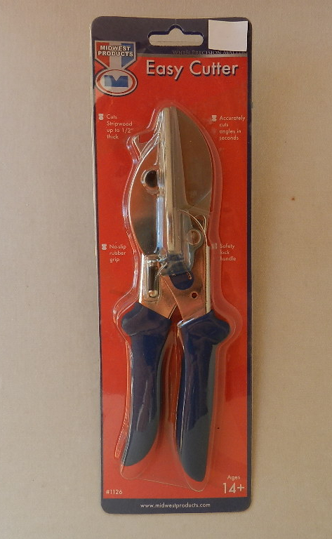Midwest Easy Cutter. Cuts stripwood up to 1/2″ thick. Accurately cuts angles in seconds. No-slip grip. Safety lock handle.